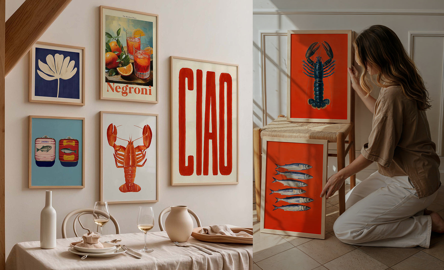 The perfect combination between design and ingredients and dishes we love, now ready to hang in your kitchen, living room, hallway or in every room of the house. Discover the complete collection