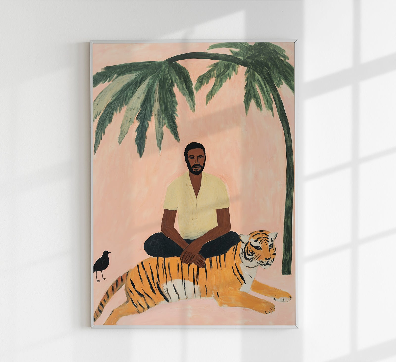 A man, a tiger and a black bird Tropical Art Poster