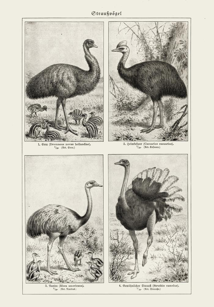 Antique Ostrich Breeds Poster
