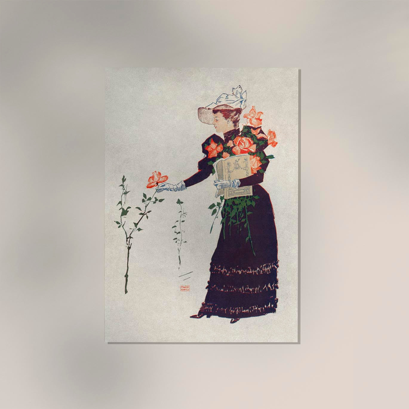 Woman picking up flowers by Edward Penfield
